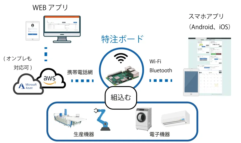 データ収集に最適なセンサーを選定し、独自のデバイスを開発。「Raspberry Pi」を利用した IoT デバイスは、小型で安価な為、量産・試作開発に対応。また、拡張性が高く、既存システムの IoT 化にも活用できます。