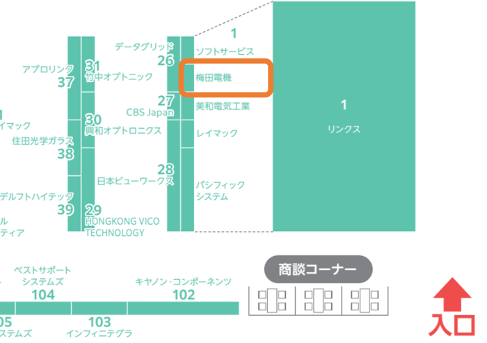 【弊社ブース位置】Dホール入口からすぐ左。小間番号は「1」になります。